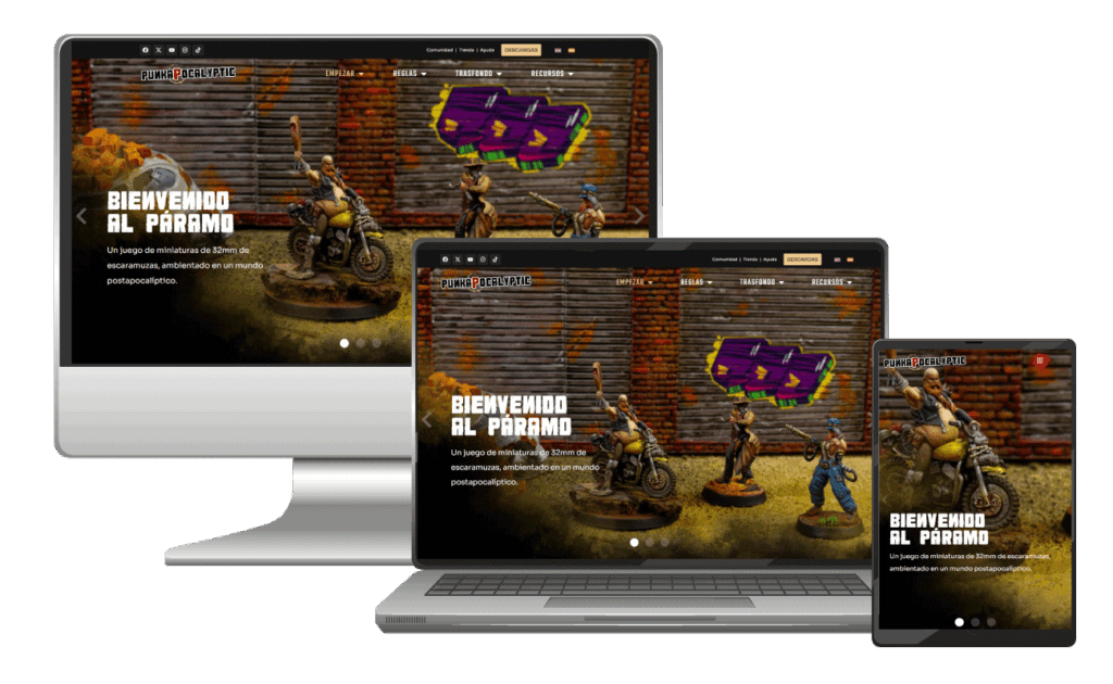 La web se ha concebido para transmitir su espíritu: un wargame post-apocalíptico irreverente, con humor macarra y una ambientación visceral, invitando al usuario a sumergirse en “el Páramo”. El diseño es visualmente potente, cargado de identidad, con un estilo coherente con el universo del juego y una navegación intuitiva para que tanto nuevos jugadores como veteranos encuentren lo que buscan fácilmente.